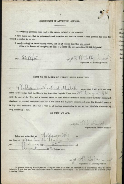 - Embarkation in Sydney on 22 May 1916; to France on 30 August 1916