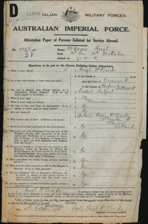 - Enlisted in Liverpool, New South Wales on 10 October 1915