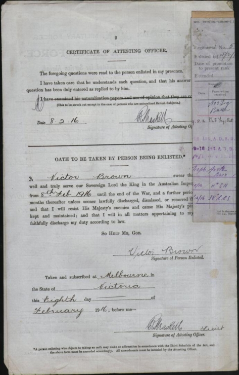 - Embarked Melbourne 4 April 1916; to France 29 August 1916; embarked for England 24 December 1916; to France 15 February 1917