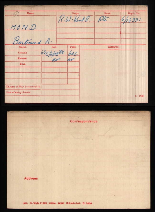 - Son of Edward and Alice Mond, of Roxwell, Chelmsford, Essex. His Brother Leslie Herbert Mond also fell.