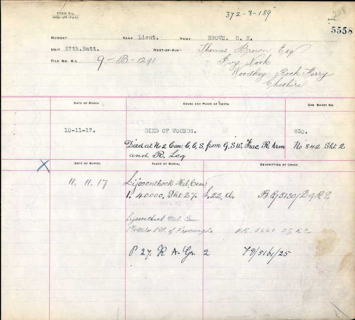 - Son of Thomas and Elizabeth Brown, of 11, Town Lane, Rock Ferry, Cheshire, England.