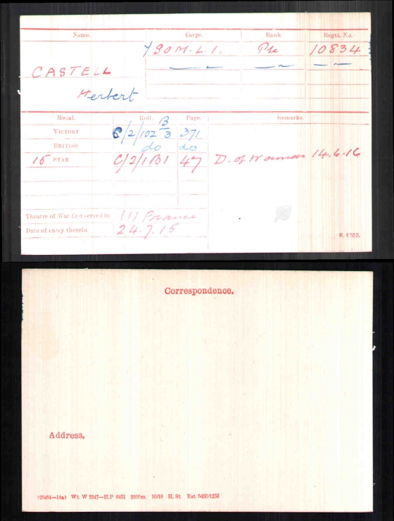 - Son of William and Mary Jane Castell, of Brentry, Westbury-on-Trym, Bristol.