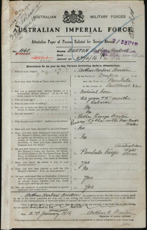 - Enlisted 31 January 1916, Goulburn, New South Wales