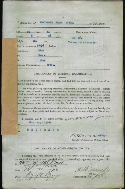 - Enlisted 14 August 1916, Brisbane, Queensland