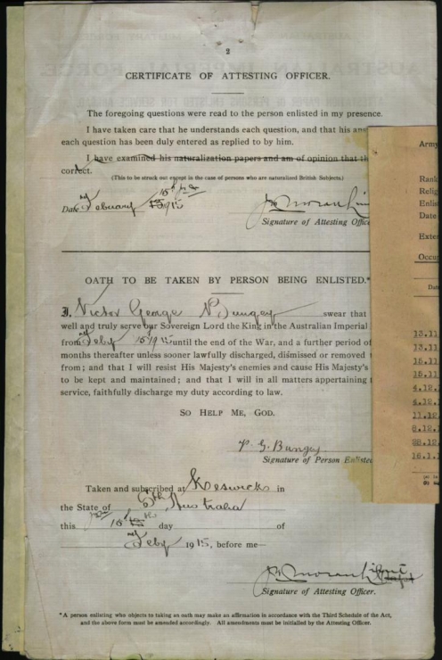 • Son of Thomas and Isabella Bungey, of 21, George St., Norwood, South Australia