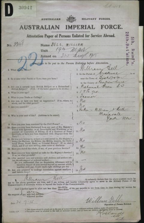 - Son of W. J. and Agnes Bell, of Guildford, Western Australia.
